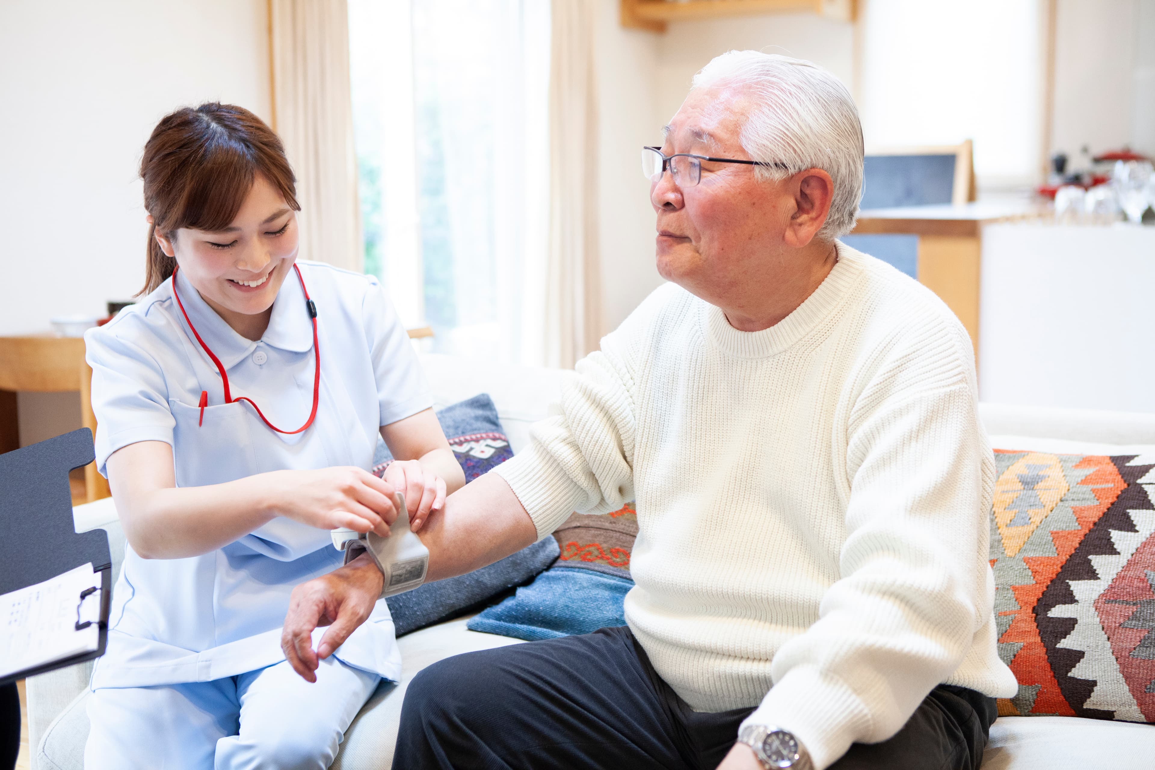 指定訪問看護アットリハ大山は、ご利用者さまに5年後・10年後も変わらずご自宅に住み続けていただきたいという想いのもと、サービスを提供しています。当事業所では、ご利用者さまの「生活の場」で訓練を行えるという特性を活かし、お一人おひとりの生活スタイル・住環境に合ったリハビリプログラムを用意。また、ご利用者さまの健康状態の観察や医療的ケアはもちろん、「住み慣れた自宅で人生の最後を迎えたい」というご希望を叶えるために看取り対応にも注力しています。看取りにおいては、ご利用者さまだけでなくそのご家族さまへのサポートも重視しています。当事業所では、ご家族さまが何でも相談できる環境と、ご利用者さまの緊急時にスタッフが即座に駆けつける体制を整備。看取りに対するご家族さまの不安を払拭し、ご利用者さまが安心して「最期の場所」にご自宅を選択できるよう努めています。 そのほか、ご利用者さまに、生活のなかの「生きがい」を見つけていただけるよう支援しているのも、当事業所の特徴です。ご利用者さまが家庭内での役割や社会交流の場を持つことが、生き生きとした暮らしにつながると考え、個々に合った活動を提案しています。 訪問看護・リハビリの仕事の最も魅力的な点は、訪問時間中は1人のご利用者さまのケア・リハビリに集中できること。ご利用者さまに、1対1でじっくり関わりサポートしたい方、個別性を重視した看護・リハビリを実践したい方が、存分に力を発揮できる環境です。